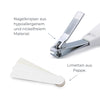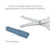 Das Baby-Maniküre-Set umfasst eine Schere mit runder Spitze und einen Nagelknipser aus nickelfreiem Stahl, hypoallergen und für mehr Hygiene leicht desinfizierbar. Sie haben einen ergonomischen Griff, der sicherer ist, wenn Sie die Nägel von Kinderhänden und -füßen kürzen müssen, die oft nicht still bleiben.