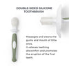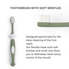 The double-sided silicone toothbrush is designed to massage the gums and mouth during teething, providing relief and stimulating the gums. The soft-bristle toothbrush, on the other hand, is intended for the daily cleaning of the first teeth, ensuring effective yet gentle oral hygiene as teeth begin to emerge.