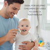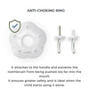 - Anti-choking safety ring: securely attaches to both toothbrushes, preventing them from going too deep into the child’s mouth, for safe use even during independent brushing.