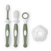 - A single set for all stages of your child’s oral hygiene: from gum massage and tongue cleaning to brushing the first little teeth.