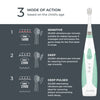 The operation takes place with 3 different vibration modes depending on the needs of the age: 1- 16,000 vibrations per minute for the gentle cleaning of the gums and the first teeth 2- 22,000 vibrations per minute for deep cleaning starting from the pre- drain3- 22,000 pulsed vibrations per minute to remove plaque.