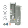 Nuvita's thermal water bottle 4435 can keep food hot for up to 12 hours and cold for up to 24 hours thanks to its double-walled 18/8 stainless steel construction and vacuum insulation technology.