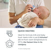 • Heats quickly in just 2 minutes, ideal for formula milk and baby food.