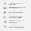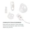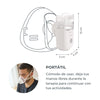 El kit incluye una mascarilla para adultos y niños, una boquilla, un estuche de transporte, un cable micro USB y un soporte de silicona súper suave para uso manual. Todos estos accesorios facilitan el uso y transporte del aerosol.