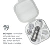 L'aspirateur est extrêmement facile à nettoyer. Il suffit d'insérer l'embout dans de l'eau chaude et d'allumer l'appareil. L'eau nettoie automatiquement les parties internes, qui sont éjectées par l'embout. En outre, vous pouvez stériliser l'embout et le réservoir à mucus dans de l'eau bouillante ou à l'aide d'un stérilisateur à vapeur pour une hygiène plus poussée.