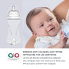 Le biberon inclus est anti-colique avec un système de valve sur le fond, plus efficace que les systèmes anti-coliques standards avec la valve dans la tétine, prévient mieux les coliques gazeuses et les otites ; la tétine est approuvée par l'AIO - Association italienne des dentistes.